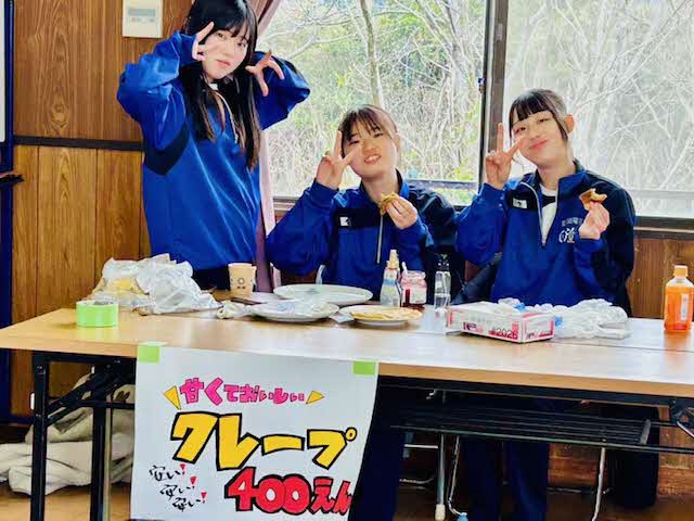 【JRC部】第2回連理松マルシェに参加しました! 2025年04月04日 JRC部は令和7年3月30日に連理松センターで行われた連理松マルシェに参加しました!3年生が卒業されてからの対外的な活動はこれが初めてとなります。マルシェでは新3年生がクレープの実演販売、新2年生がたこ焼きの実演販売のほかにも家庭クラブで作成した巾着ぶくろなどの販売なども行いました。校内でも参加者を集い、参加に手を挙げてくれた生徒さんも小物の販売をしてくれマルシェを盛り上げてくれました!新生活に向けて頑張りましょう♪